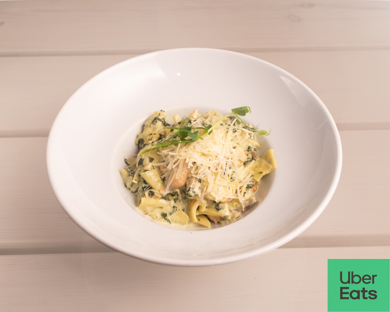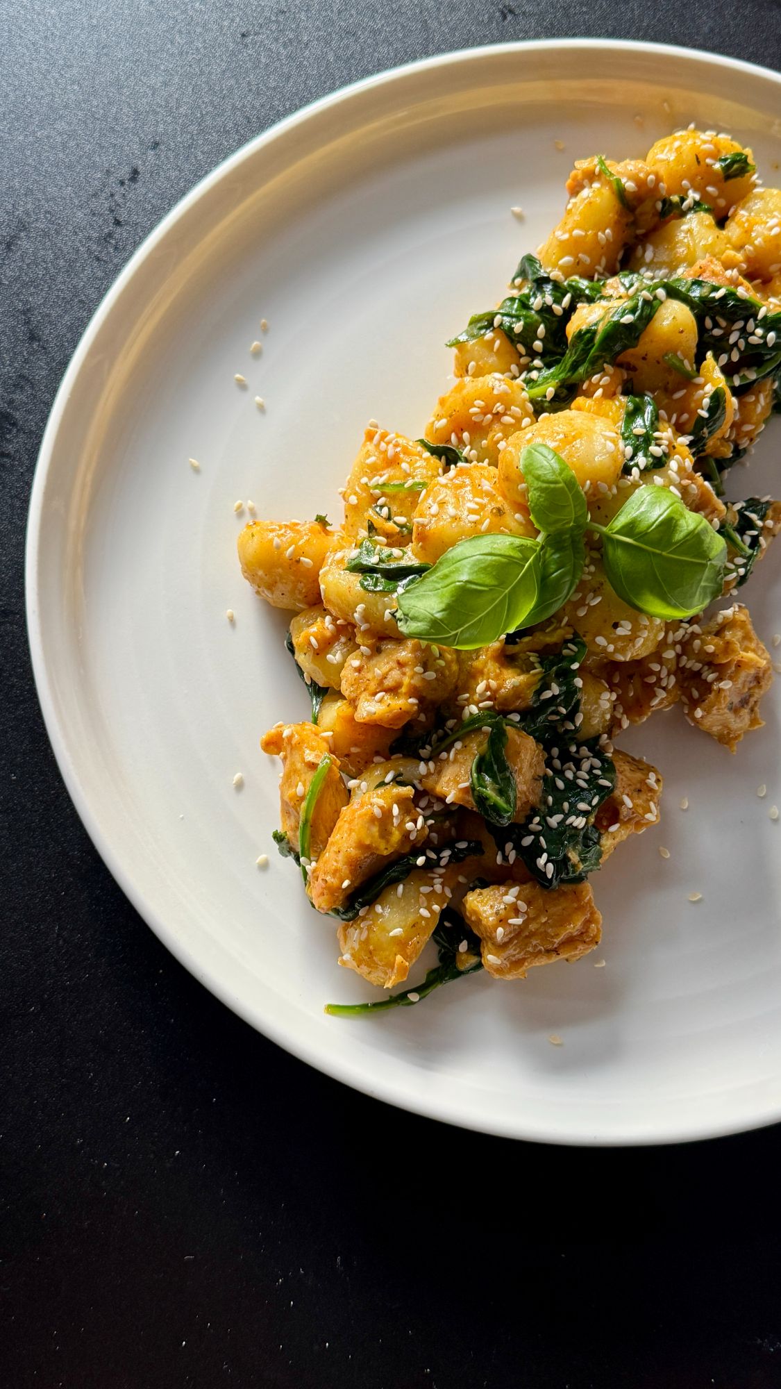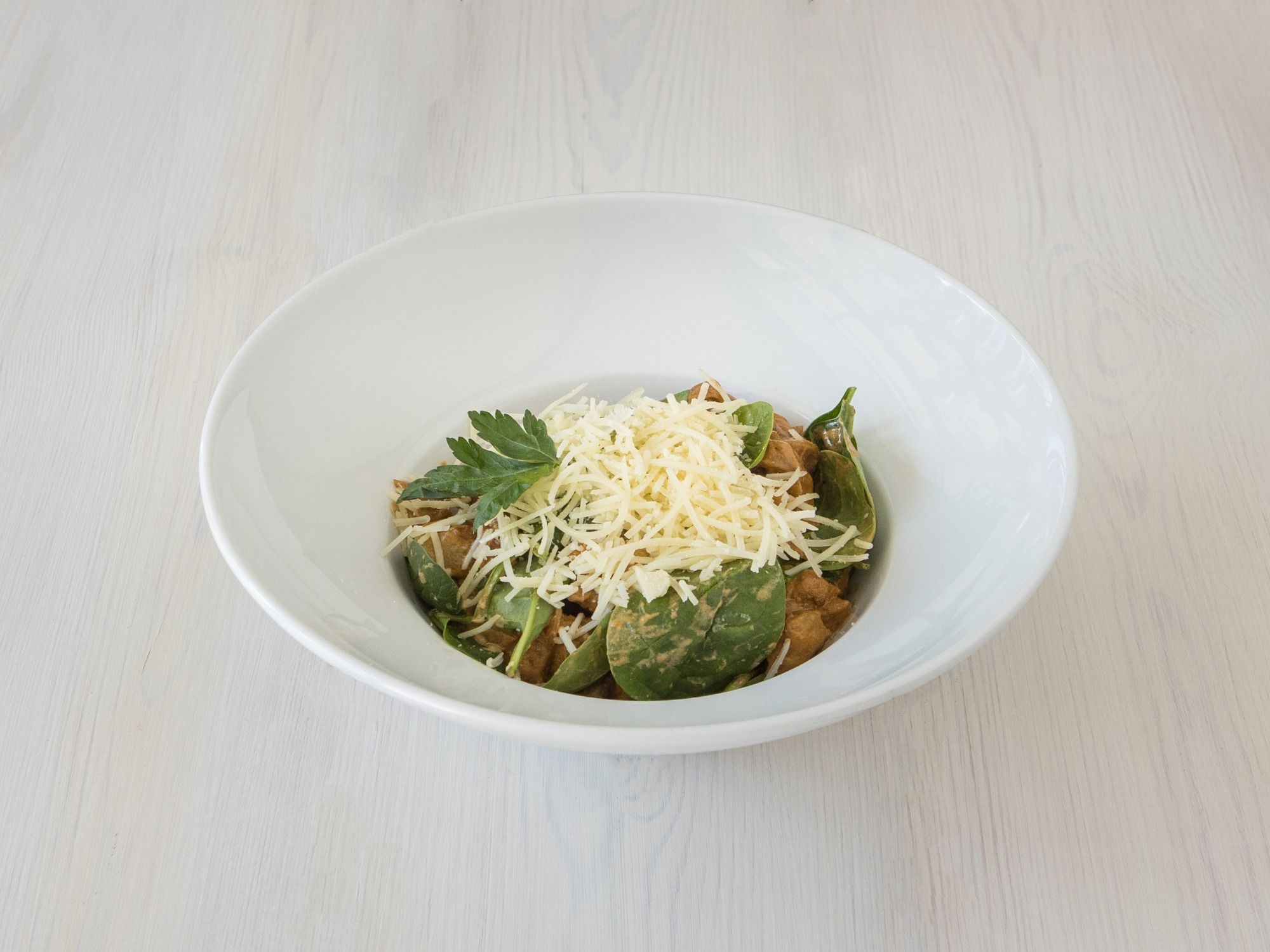 NOWOŚĆ!!! Gnocchi z kurkami i kurczakiem (gnocchi, kurczak, kurki, świeży szpinak, cebula, sos śmietanowy)